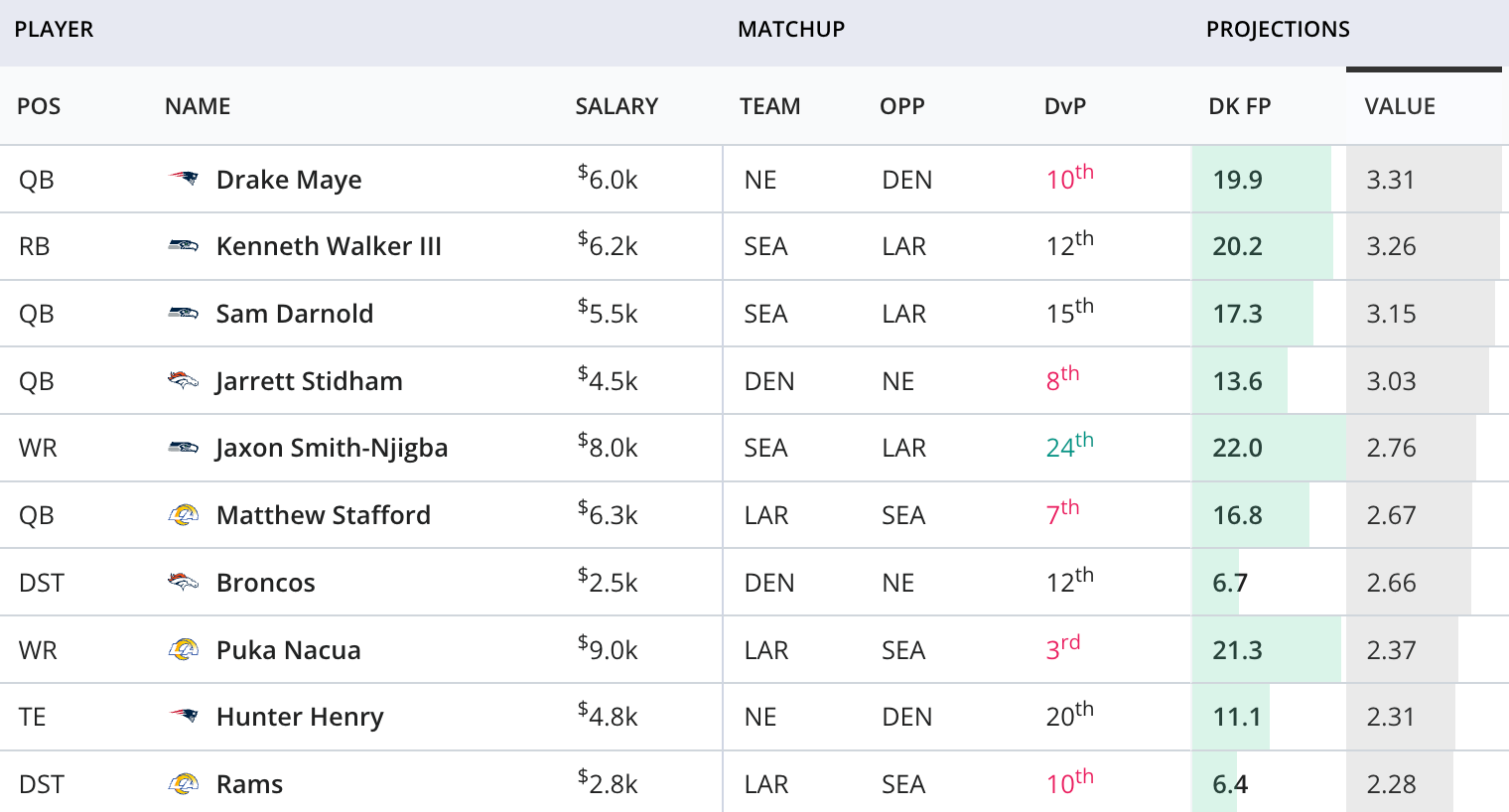 View the latest projections and value rankings for DraftKings and FanDuel.