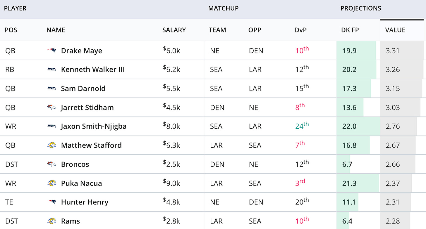 💸 DraftKings value ranks: Two-game slate
