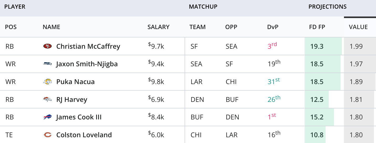 View the latest projections and value rankings for DraftKings and FanDuel.