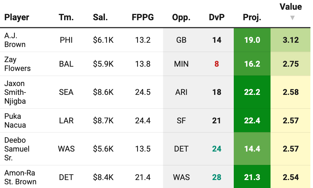 * Based on WR/CB matchup analysis by FantasyPoints.com