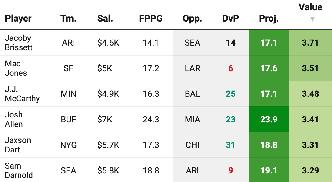 🚫 Nope: Jayden Daniels (WAS); Kyler Murray (ARI); C.J. Stroud (HOU)
