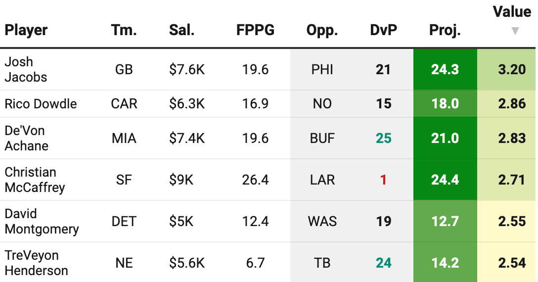 2nd best - Kyle Monangai/D’Andre Swift (CHI) vs. NYG