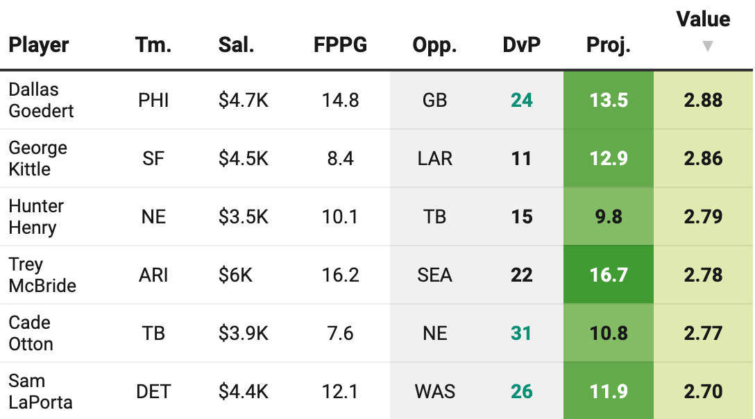 🥶 Bust alert: Luke Musgrave (GB) vs. PHI — “Musgrave is worth stashing, but you might not want to start him this week against an Eagles defense that’s the third-most difficult matchup for fantasy tight ends.” — Justin Boone, Yahoo! Sports