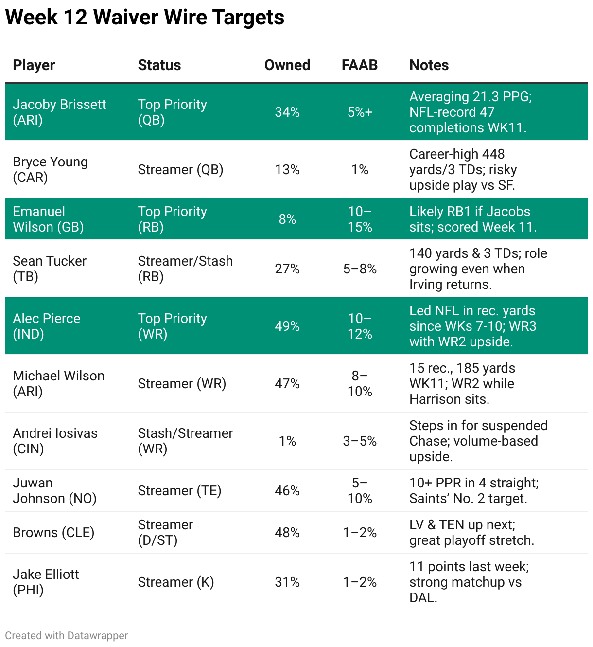Week 12 waiver wire cheatsheet